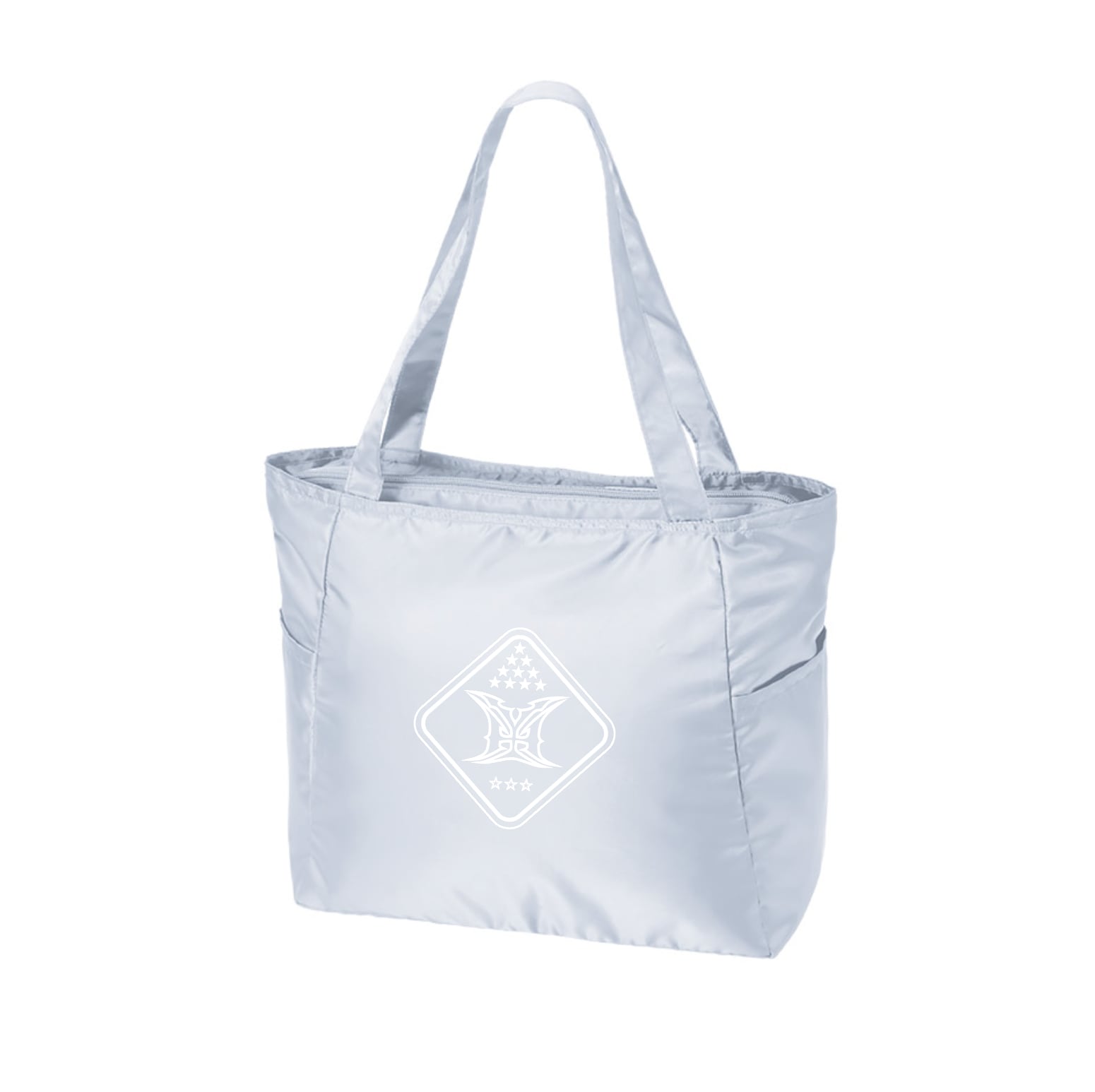 両サイドにはポケット付きで、スマホや折りたたみ傘などを入れることができ、またベロ付きの口元ファスナー仕様で開閉がしやすく、容量いっぱいに食材などを入れる事ができます。